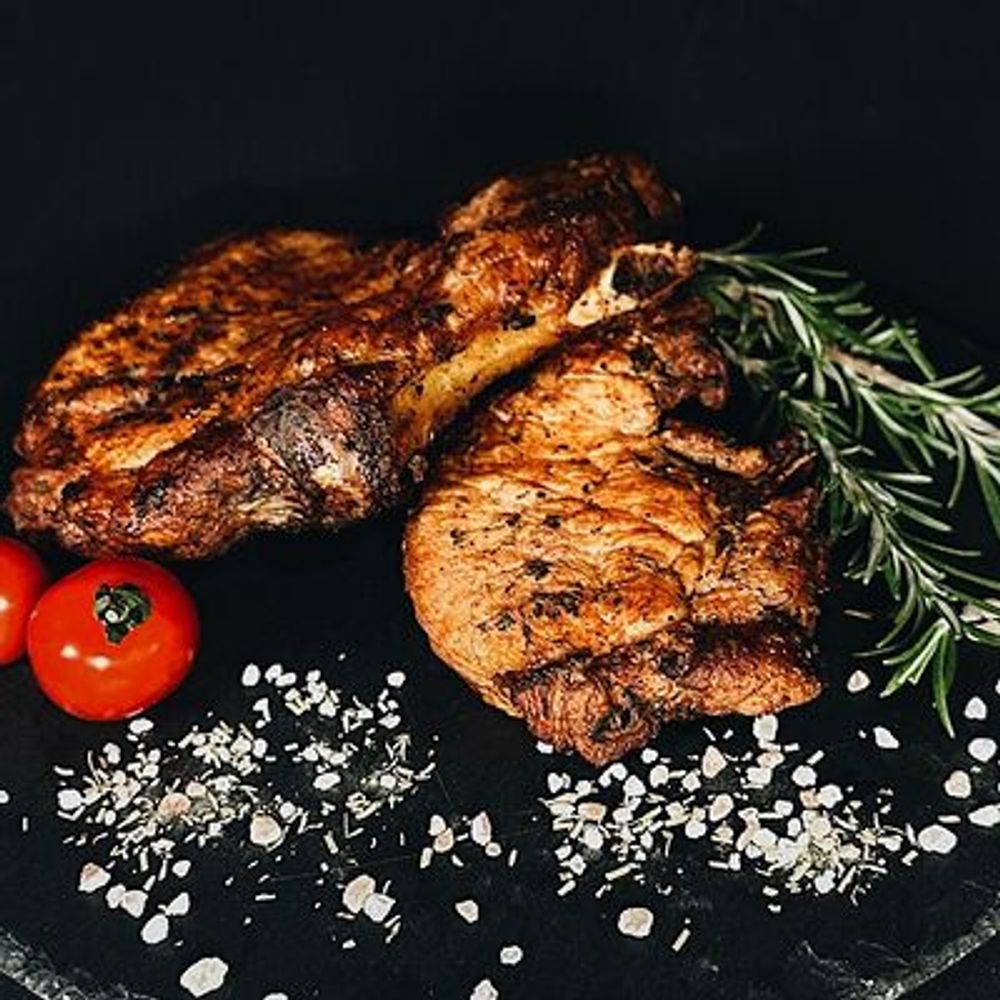 Пряные румяные ребрышки. Подаются с маринованным луком, жареный лаваш